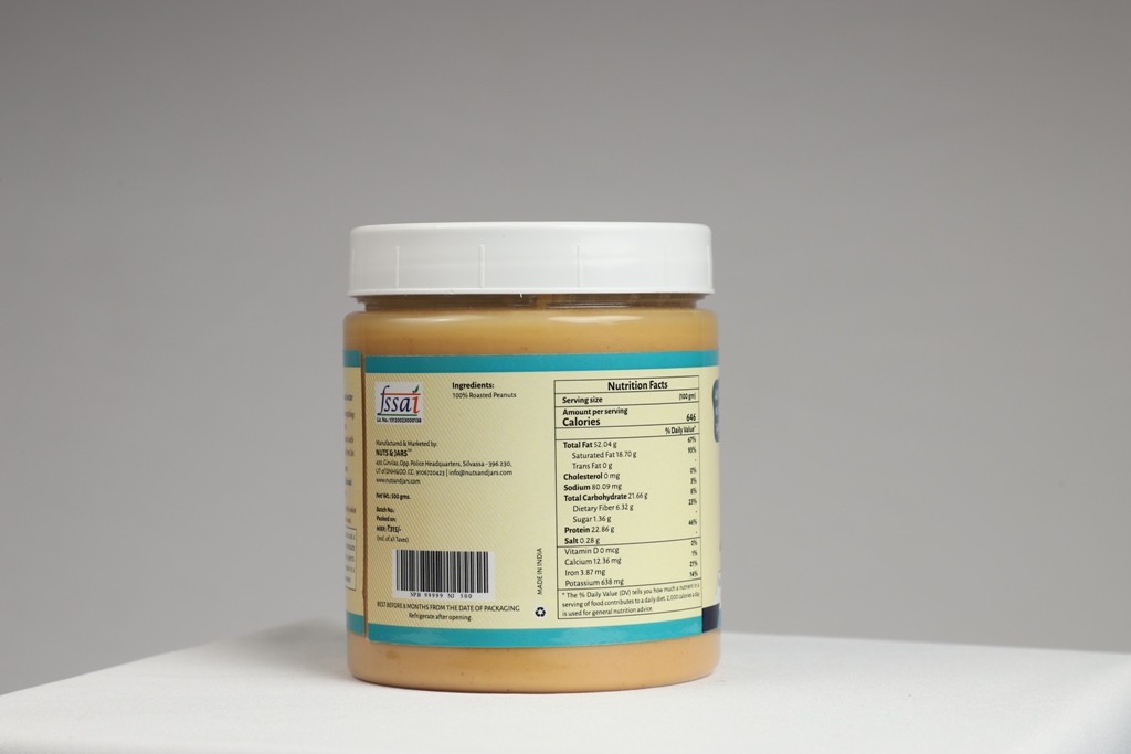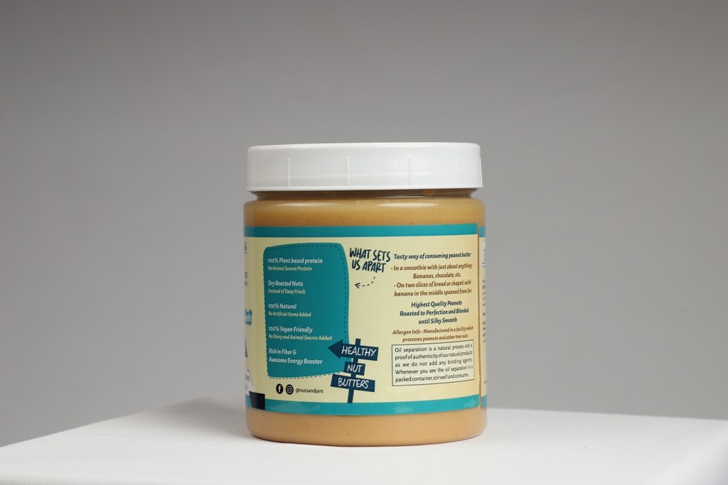 Nuts&Jars Peanut Butter Smooth is made with 100% Peanuts and Nothing Else