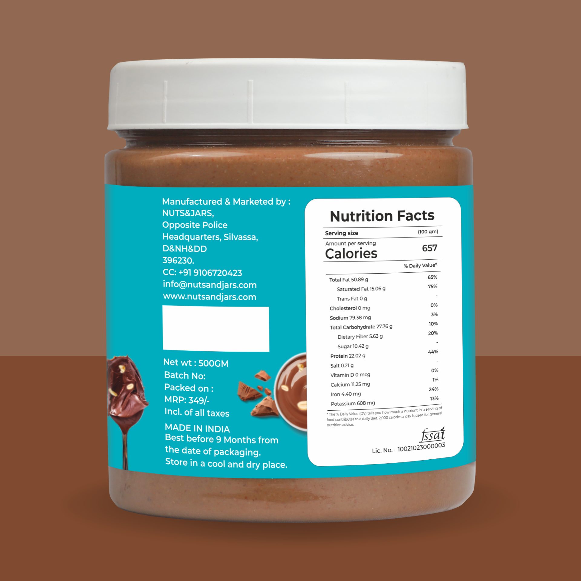 Nuts&Jars Chocolate Peanut Butter Is Blended with Belgian Dark Chocolate 🍫 Churned to Perfection which gives you the Rich Taste of Belgian Dark Chocolate without Compromising The Original Nutty Taste of Roasted Peanuts.